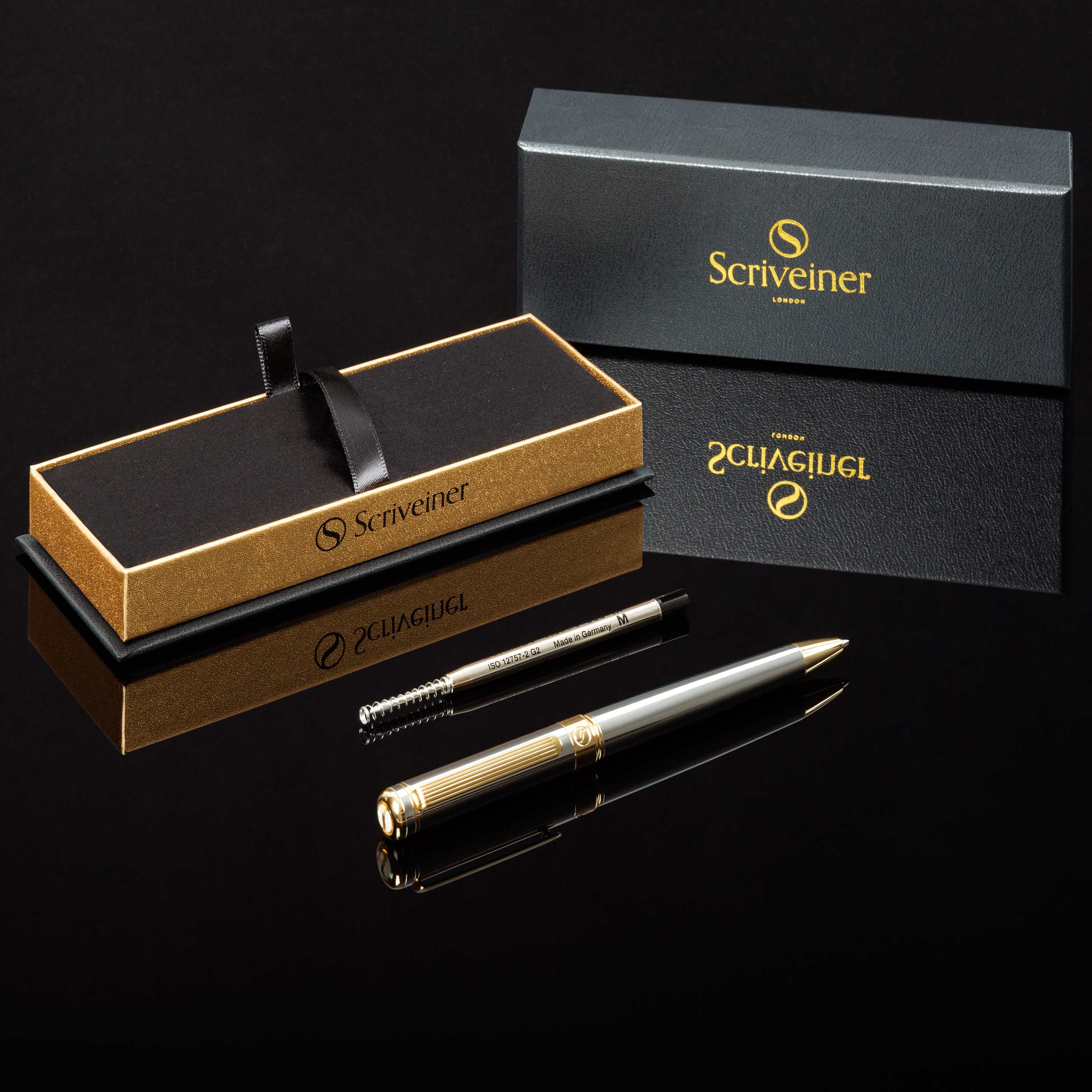 Every Scriveiner pen arrives in a refined presentation box, cushioned, complete with a spare refill and a two-year warranty card stored under the cushion. An exceptional gift for life’s milestones, or a worthy addition to your own collection, and always a pleasure to open.