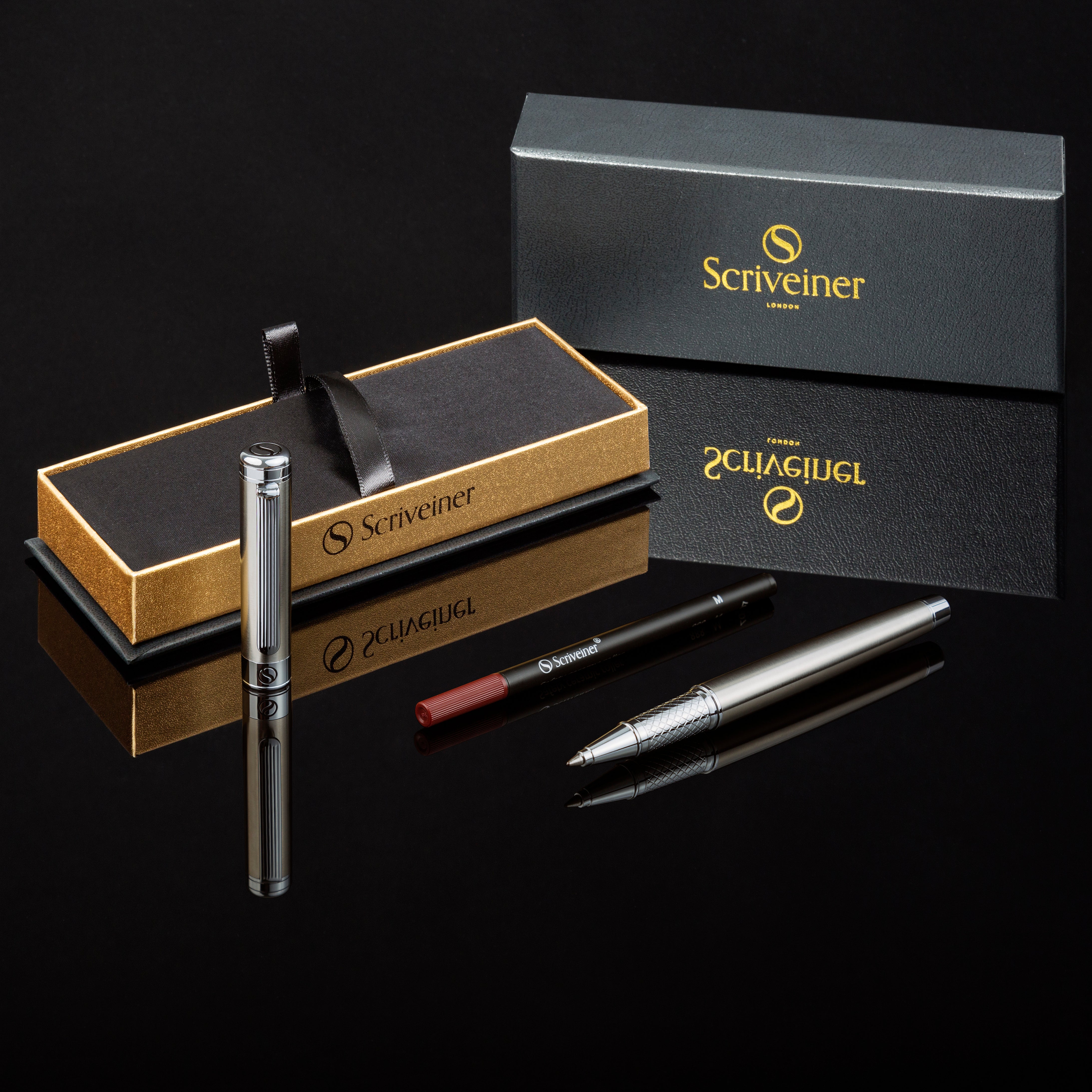 Every Scriveiner pen arrives in a refined presentation box, cushioned, complete with a spare refill and a two-year warranty card stored under the cushion. An exceptional gift for life’s milestones, or a worthy addition to your own collection, and always a pleasure to open.